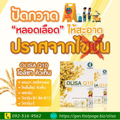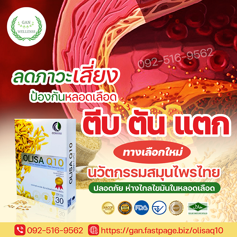 โอลิซาคิวเท็น "olisaq10" ผลิตภัณฑ์เสริมอาหารเพื่อบำรุง ปรับสมดุล ดีท็อก ทำความสะอาดหลอดเลือด ลดภาวะหลอดเลือดตีบ ตัน แตก
